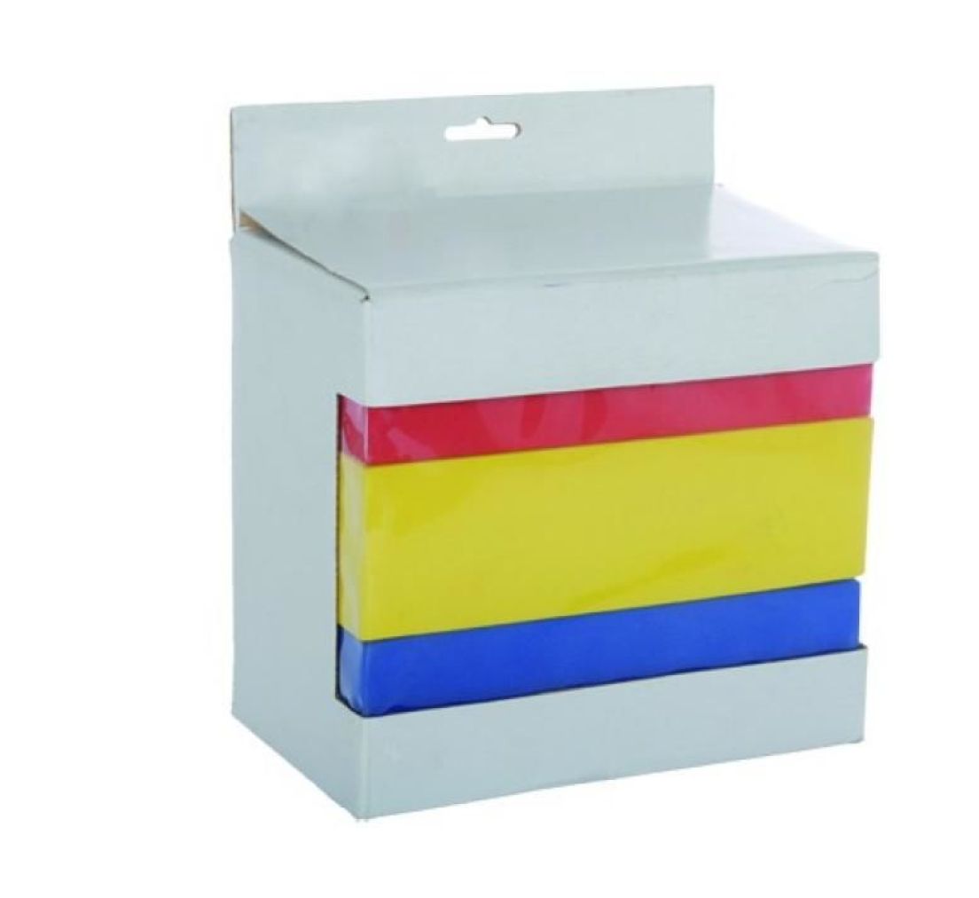 The set contains 3 boxes, colour: yellow, blue and red.